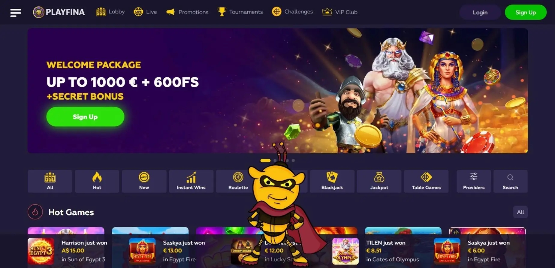 More than 11,000 slots, all varieties of blackjack, dozens of roulette games, craps, video poker, and other games are available to you at Playfina casino online Unveil the Exciting Playfina Casino Bonus Code and Uncover Exclusive Benefits! Play the Best Online Casino Games at Playfina ✓ Try Slots, Blackjack, Roulette, Craps and Video Poker with Huge Bonuses. Playfina Casino How to Start Up to 1000€ + 200 FS + Secret Bonus... Playfina Casino - Bonus Codes – 50 Free Spins!